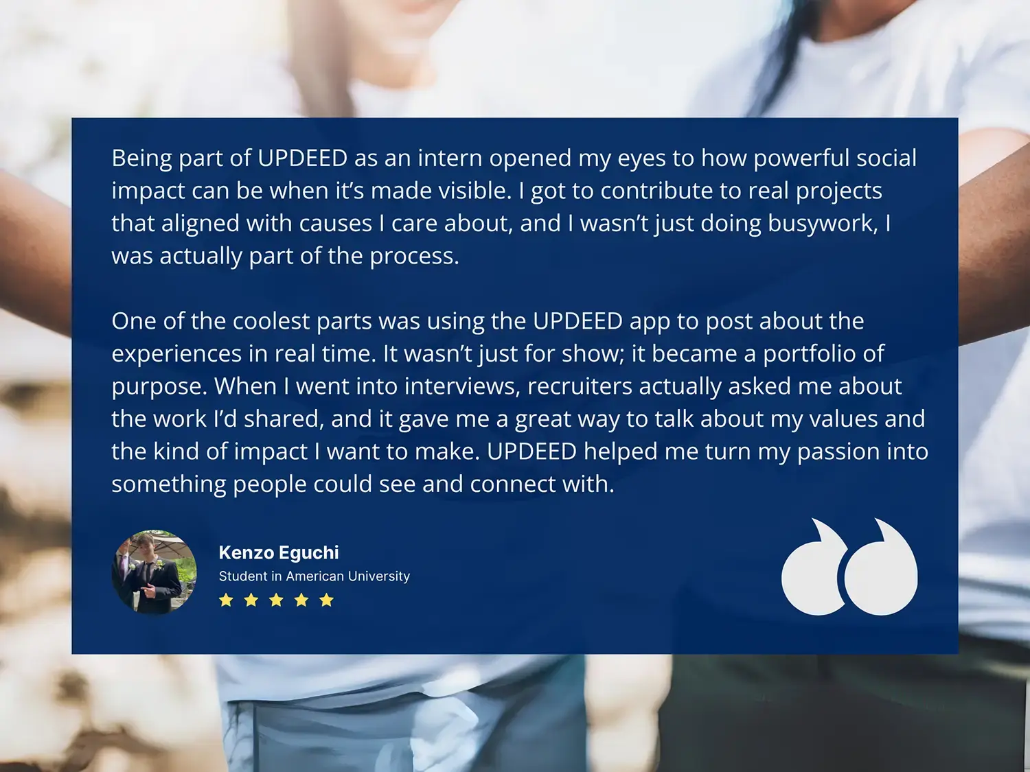 - Aanya, a college student from Pune, used her UPDEED Impact Profile to secure a prestigious fellowship that normally accepts only postgraduates. “The interviewer spent 15 minutes exploring my community projects through my Impact Profile,” she shared. “It gave credibility to work that would have otherwise been just bullet points.”